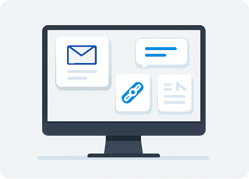 Connect the channels you already use, such as Google Workspace, Office 365, Email, SMS, Reddit, Discord, Slack, and websites.
