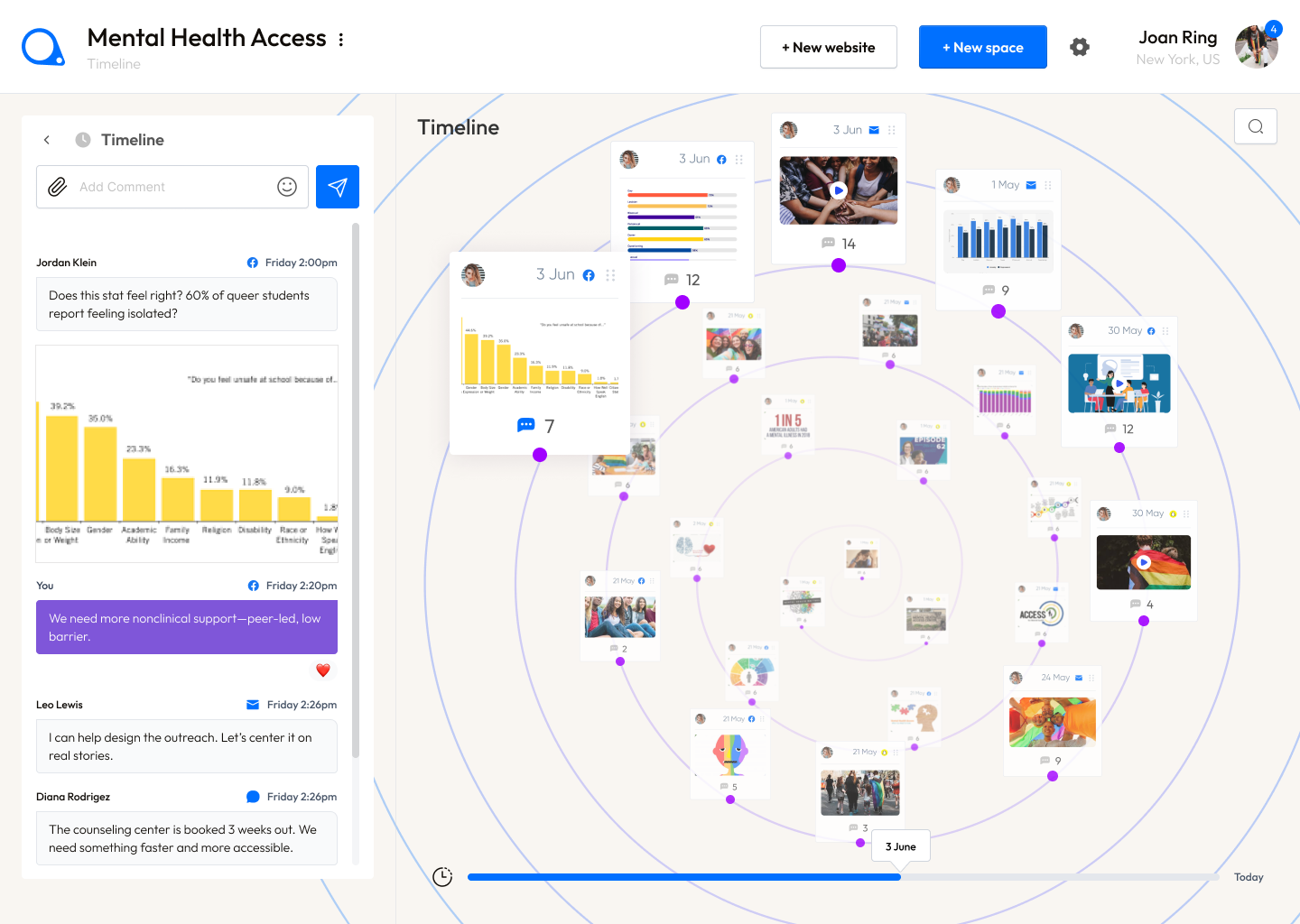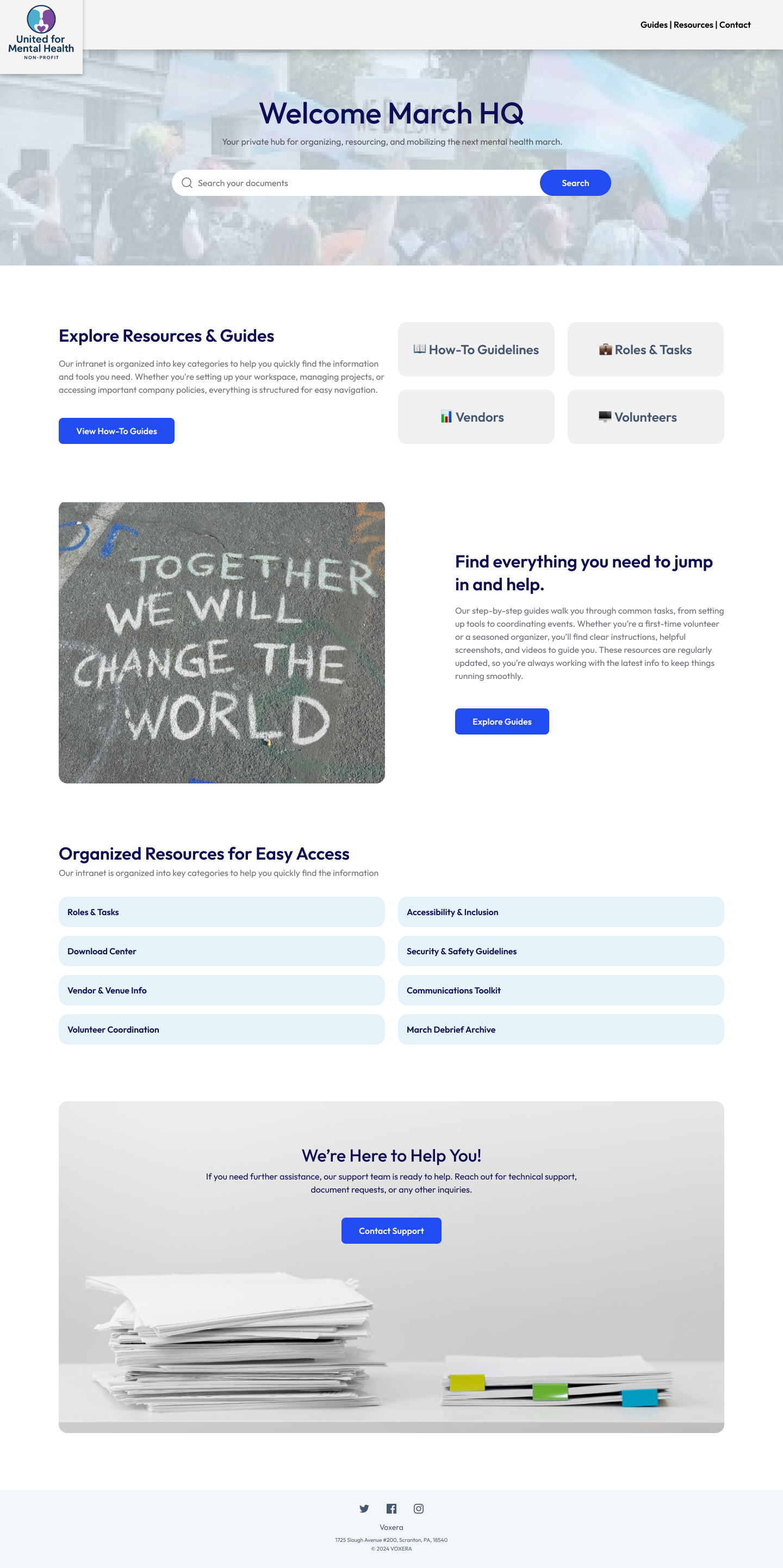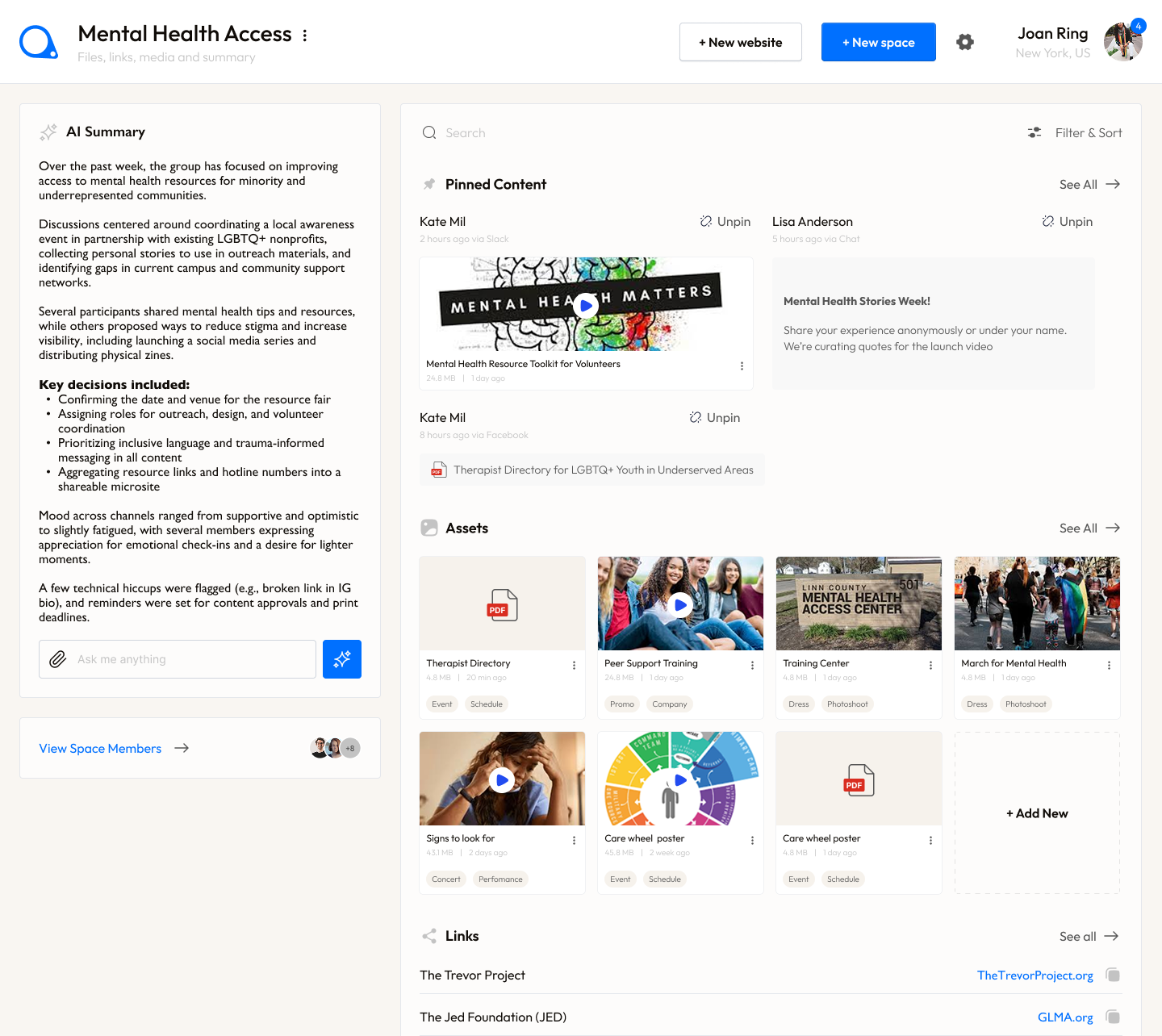 Create public-facing pages to promote events like marches, with curated visuals, key messages, and calls to action. At the same time, spin up private intranets to manage internal resources—like volunteer signups, training materials, logistics checklists, and debriefs. Each page pulls from real conversations, assets, and AI summaries—so knowledge flows naturally, without duplication or extra work.